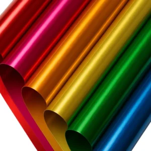 El vinil textil metálico de transferencia térmica ofrece un acabado de alto brillo y efecto espejo, lo que agrega un toque de distinción y estilo a cualquier prenda. Compuesto de poliéster ecológico, este vinil es altamente utilizado en la industria de la moda para crear prendas llamativas y duraderas. Su durabilidad y capacidad de soportar tanto lavados comunes como en seco lo convierten en una opción preferida para los diseñadores.