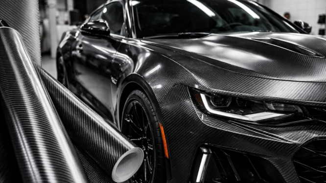 El vinil automotriz tipo fibra de carbono también funciona como una capa protectora.
